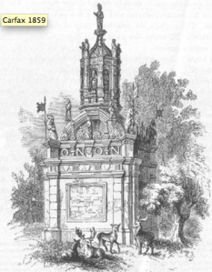 But wait… there’s more… in 1610 the city erected a conduit at Carfax to feed water to the vicinity. A nice, stone, noble sort of thing… practical too, especially if you like to drink clean water, which most people do. However by 1789 the city planners had obviously already decided upon the devastation of Carfax and promptly gave it to Lord Harcourt, who set it up in Nuneham Park, allowing the original site to be widened for, yes,  coach traffic.