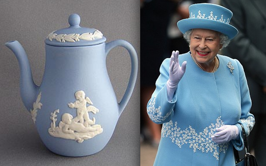 One is our Gracious Monarch, Queen Elizabeth II, on a visit this morning to in Enniskillen, Northern Ireland as part of her Diamond Jubilee Celebrations (where importantly she shook hands with former IRA leader and NI’s Deputy First Minister Martin McGuinness for the first time, an act unthinkable throughout much of her reign) and the other is a teapot. Well to be precise it’s a Wedgewood Jasperwear Coffeepot, but that’s just splitting heirs (!). But can you spot the difference?