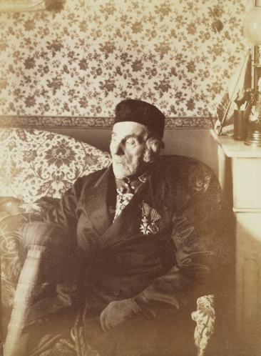 During the battle he fought on the side of the French Empire, under the command of Napoleon Bonaparte, against the British. Queen Victoria even visited Hyères between 21 March and 25 April 1892, when she stayed at the Grand Hôtel de Costebelle. In the photograph below, taken circa 1891 by Henry Ellis, he wears a small black cap and supports his right hand on a cane. He wears two medals including the Legion d’honneur. The image is in the Royal Collection, and therefore belongs to the Queen (who I doubt reads this blog, and I hope will not mind me reproducing the image…)