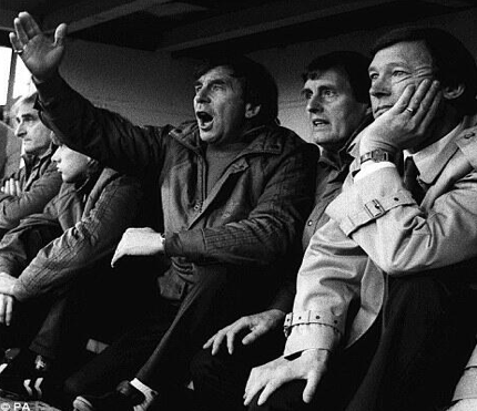 This is Alex Ferguson in his first away game as manager at Manchester United.